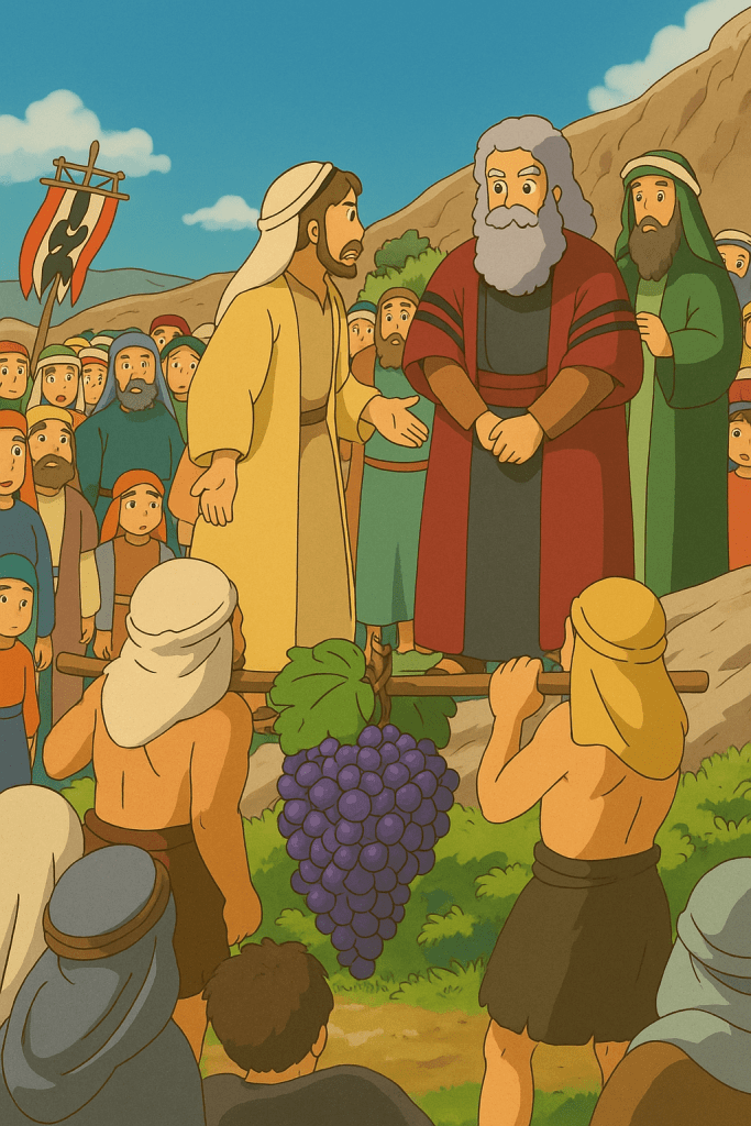 Moses selected twelve men—one from each tribe—to explore the land God had promised. After forty days in Canaan, they reported that it was indeed a land flowing with milk and honey—a rich and fruitful place. They even displayed the large produce they brought back as proof.