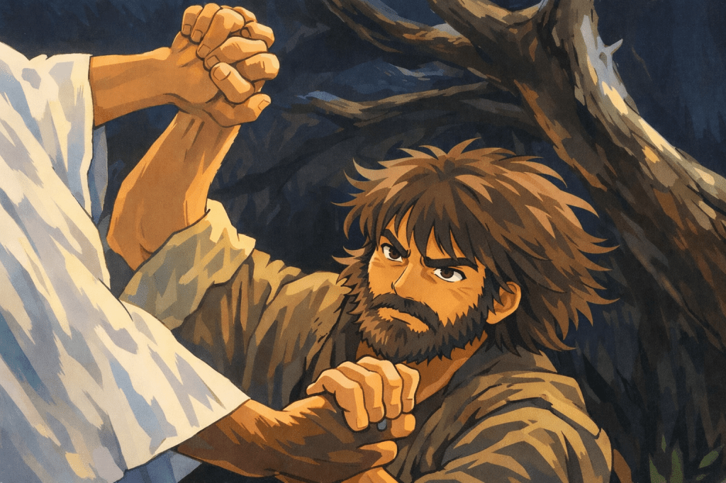 In this passage, we learn about a man named Jacob. Along with his family, he was leaving his father-in-law’s place. He sent everyone across the stream, and when he was left alone, he contended with the Angel of the Lord all night. He refused to let Him go until he received a blessing.