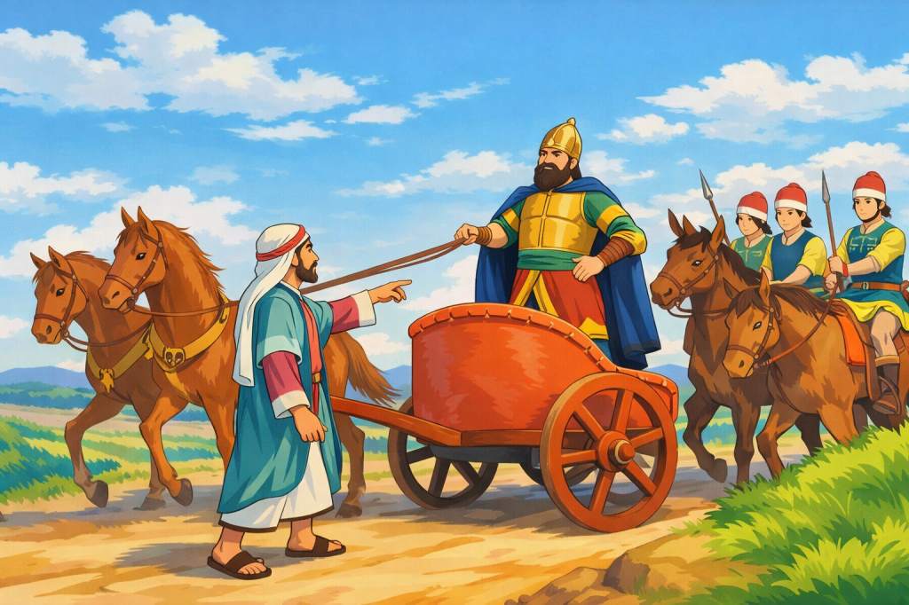 However, while Naaman was on his way back, Gehazi ran after his chariot and deceived him, saying that Elisha needed provisions for two young prophets who had just arrived. Naaman willingly gave more than what was asked. Yet nothing is hidden from God—Elisha knew what Gehazi had done.